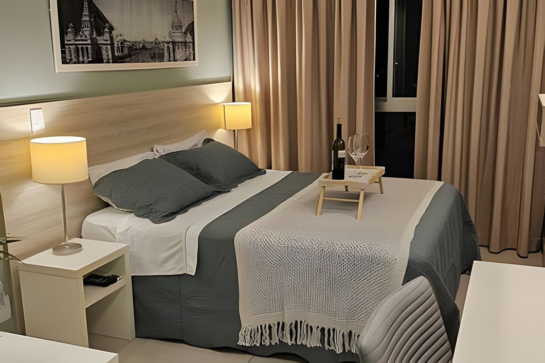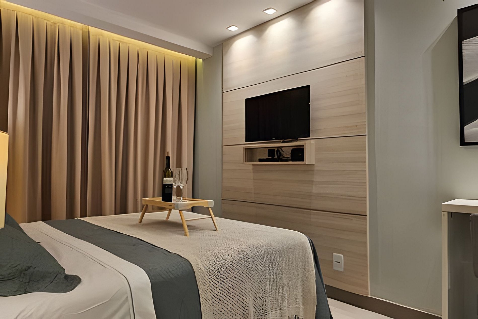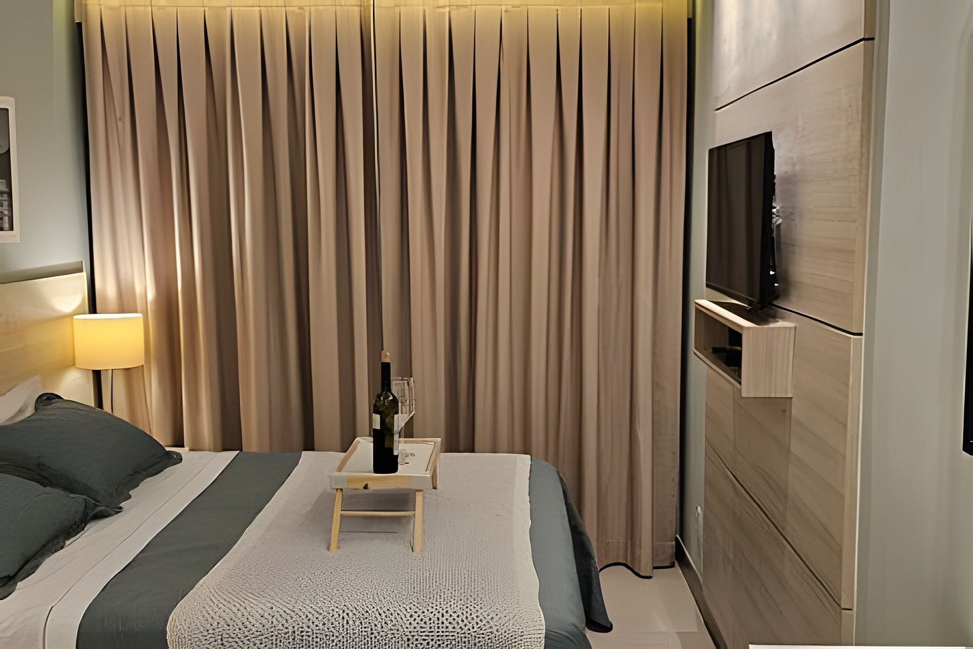 Standard luxury hotel suite, located in an excellent apart-hotel condominium equipped with complete infrastructure, including; swimming pool with wet deck, whirlpool, steam room, grassy garden, restaurant, convenience store, gym, laundry, luggage rack and 24-hour reception.