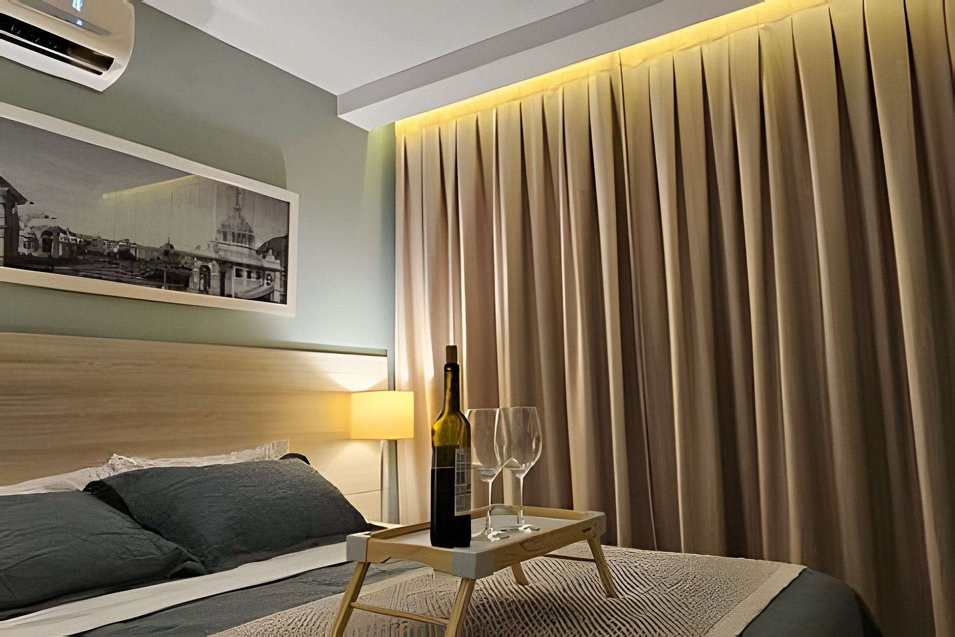 Comfortable suite overlooking the pool, finely decorated and equipped with an extremely comfortable queen size double bed with 400 thread cotton linen, split air conditioning, TV, closet, home office sideboard and pantry with minibar, microwave and coffee maker.